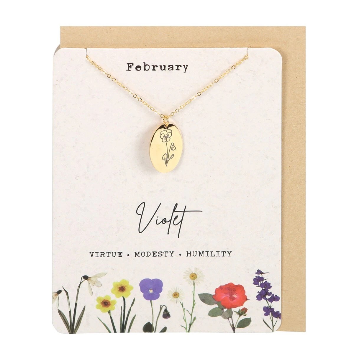 This lovely greeting card features a timeless wildflower design and holds a gold-tone necklace adorned with the recipient’s birth flower, making it a thoughtful surprise for birthdays, Mother’s Day, milestone moments and more. Symbolising virtue, modesty and humility, the violet flower is a meaningful token for those born in the month of February.